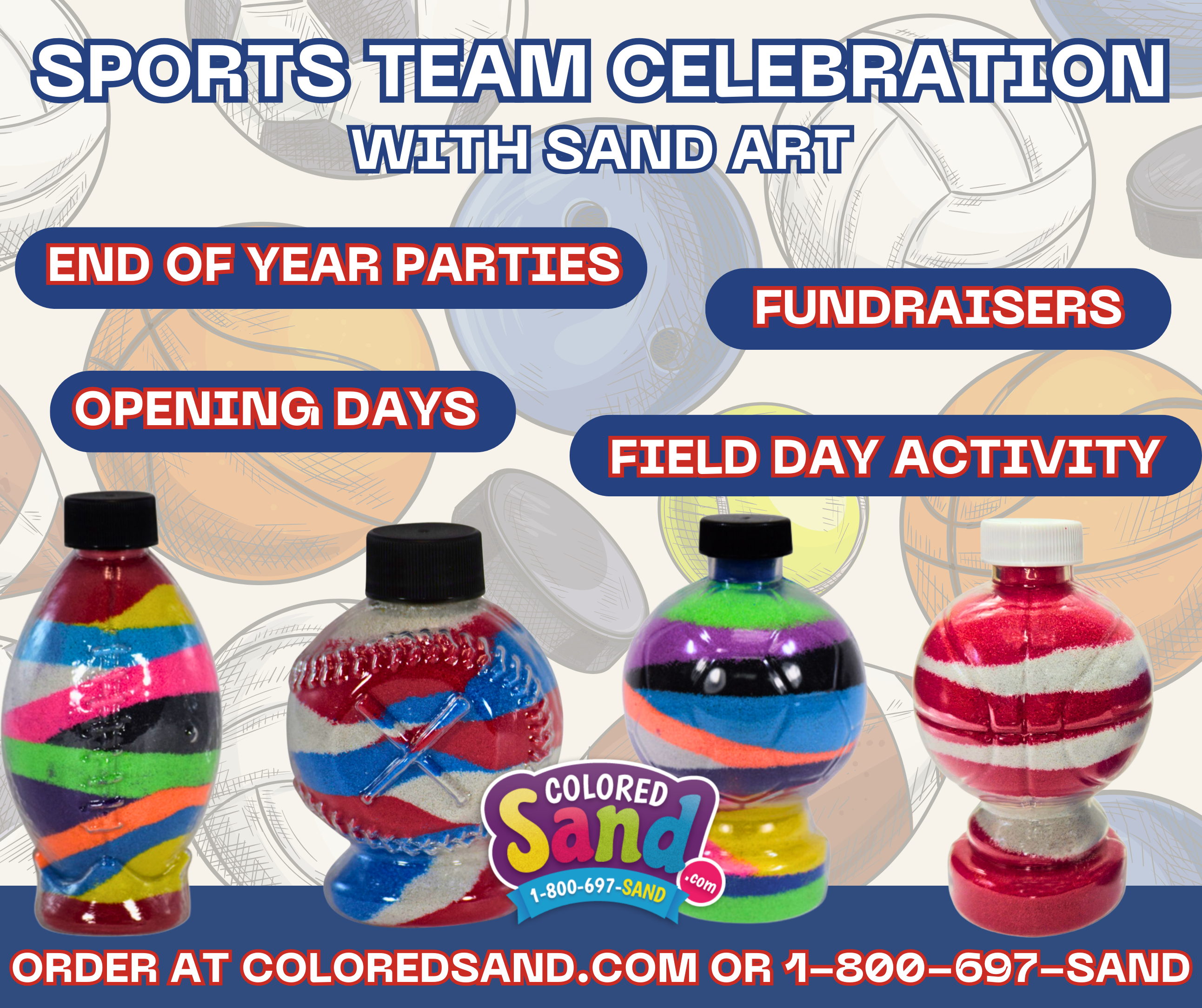 - Provide funnels & Sport Themed Sand Art bottles.